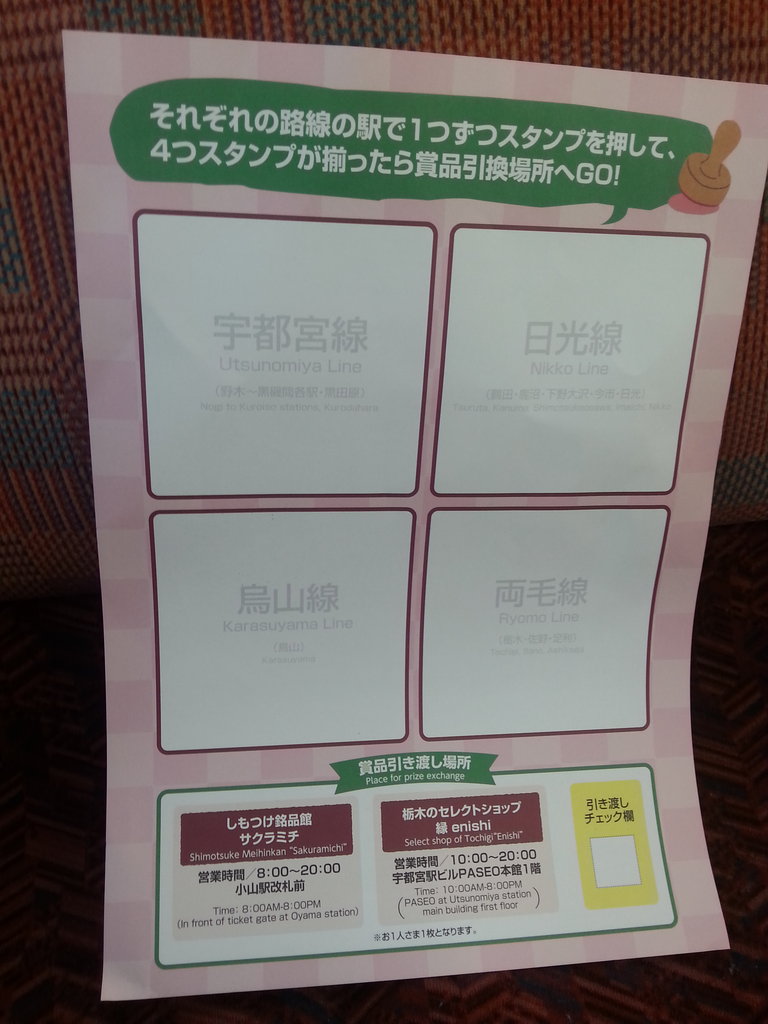 JRでは、比較的簡単なスタンプラリーが栃木県内にて